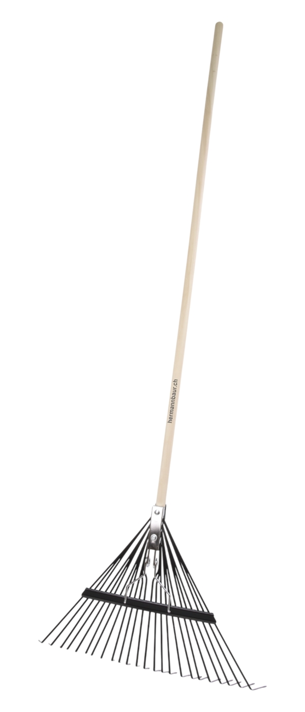 Der stabiler Holzstiel aus Schweizer Holz liegt angenehm in der Hand und sorgt für komfortables Arbeiten. Der Metall-Fächer mit 24 robusten Zinken garantiert effizientes Zusammenkehren von Laub, Gras und Gartenabfällen – ideal für saubere Wege und gepflegte Gärten.