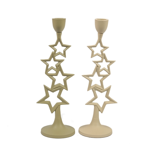 Eleganter Kerzenhalter aus Metall mit Sternmotiv in abgestufter Anordnung. Ideal für Stabkerzen.