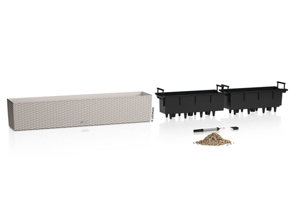Der Balconera Cottage ist aus hochwertigem, wetterfestem Kunststoff und daher leicht zu transportieren. Und das Lechuza-Bewässerungssystem übernimmt wie gewohnt die optimale Wasserversorgung der Pflanzen. Die herausnehmbaren Pflanzeinsätze mit versenkbaren Griffen können ganz einfach auf dem Boden oder einem Tisch bepflanzt und im Anschluss in die bereits montierten Kästen eingesetzt werden. Mit der moderne Flechtstruktur und der geraden Form passt Balconera garantiert auch auf ihren Balkon.