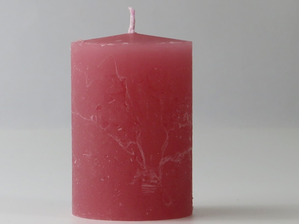 Handgegossene Stumpenkerzen; durch das Giessen sin die durchgefärbten Raureifkerzen kompakt, brennen gleichmässig ab und bereiten lange Freude.