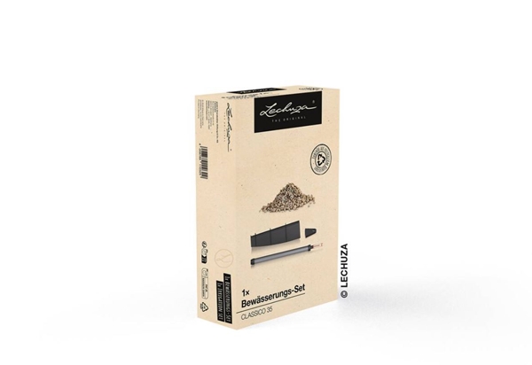 Das Bewässerungs-Set passend für die Pflanzgefässe Classico Color 35, Classico Color ECO 35 und Classico Premium 35 besteht aus einem Wasserstandsanzeiger, einem Füllschacht mit Deckel und Pon als Drainageschicht.