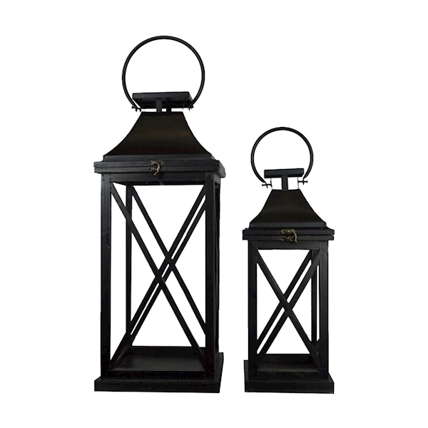 Klassisches Laternenset 2 Stück aus Tannenholz. Ganz in Schwarz.