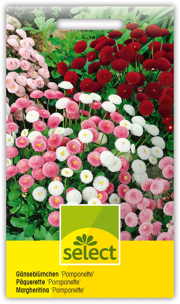 Zweijährig. Mischung. Zahlreiche dicht gefüllte, pomponartige Blüten in Rot, Rosa und Weiss. Höhe ca. 15 cm.