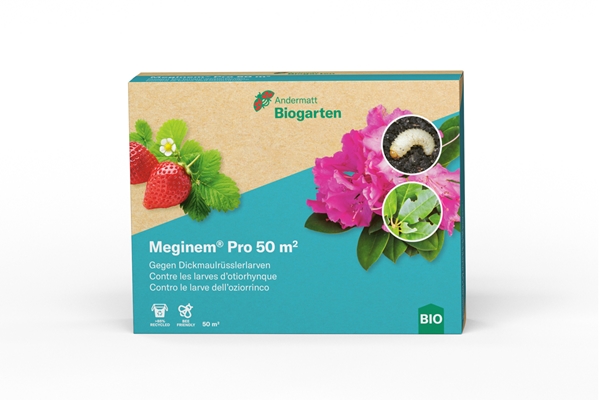 Gegen die Larven des Dickmaulrüsslers Meginem Pro Nematoden (Heterorhabditis bacteriophora) suchen im Boden aktiv nach Dickmaulrüsslerlarven, befallen diese und bringen sie innert kürzester Zeit zum Absterben.