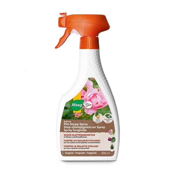 Belrose Stop-champignons en spray est un fongicide biologique prêt à l’emploi contre l’oïdium, la tavelure et la maladie de la suie sur les pommes, les légumes, les fines herbes, la vigne et les plantes ornementales. Le produit forme un film de protection préventif.