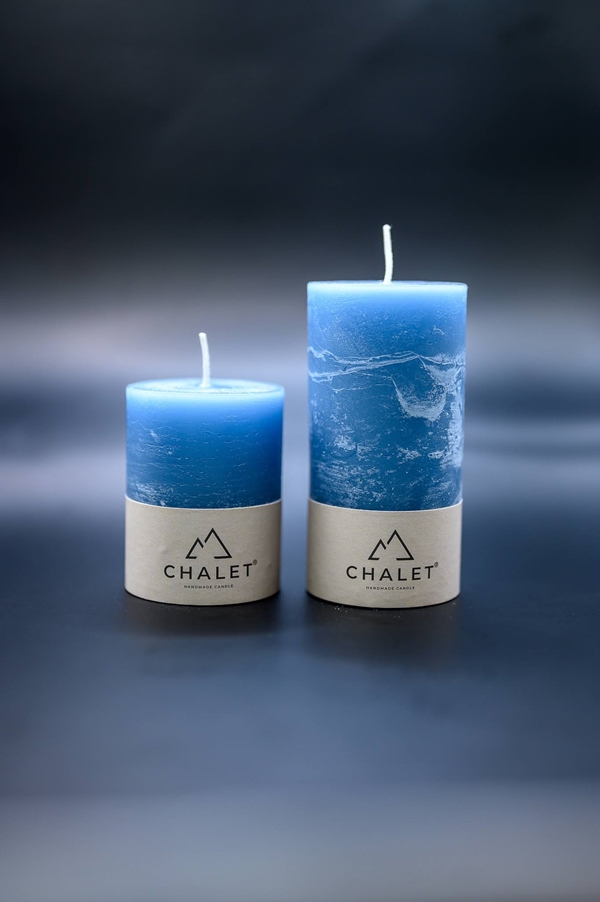 Bougie ronde Chalet bleu