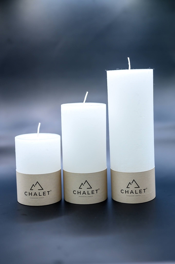 Bougie ronde Chalet blanc