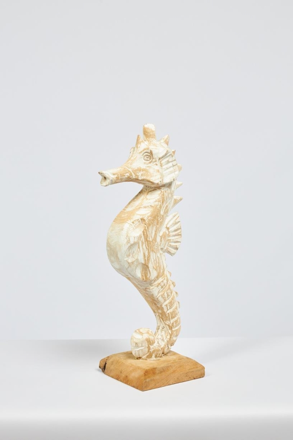 Cet adorable hippocampe dégage une véritable ambiance de vacances. Bois légèrement lavé blanc.
